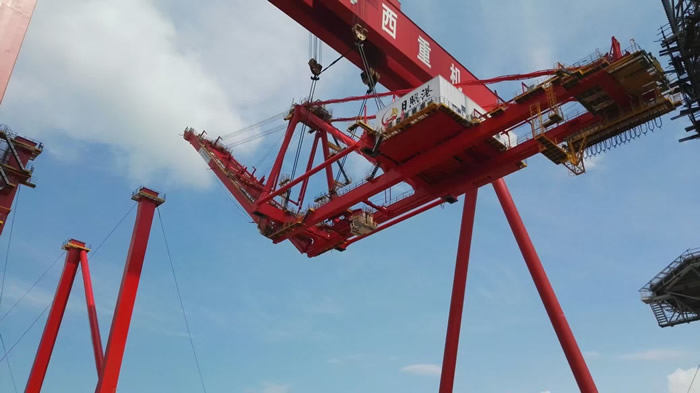 公司生產(chǎn)基地參觀同樣火爆:適逢總裝現(xiàn)場(chǎng)70T-60M岸邊集裝箱起重機(jī)項(xiàng)目整體吊裝, 1600T龍門吊平穩(wěn)吊起850噸的前后大梁、緩緩上升、精準(zhǔn)定位、穩(wěn)穩(wěn)落于該岸橋的門框上,現(xiàn)場(chǎng)高效的安裝工藝,給了在場(chǎng)的400余嘉賓巨大的視覺沖擊,掌聲、贊美聲陣陣不斷。公司整體室內(nèi)噴涂的涂裝工藝、超大型設(shè)備整機(jī)滾裝運(yùn)輸?shù)能浻布?shí)力也讓參觀嘉賓耳目一新。