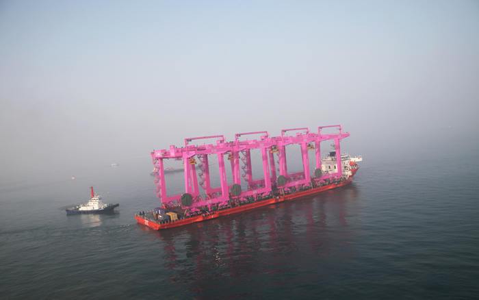 1月1日,青島海西重機(jī)為SNCT(韓國(guó)鮮光新港集裝箱碼頭有限公司)制造的8臺(tái)40噸自動(dòng)化軌道吊第一批次(4臺(tái))順利出海,成為2017年海西重機(jī)首批發(fā)運(yùn)的港機(jī)設(shè)備。