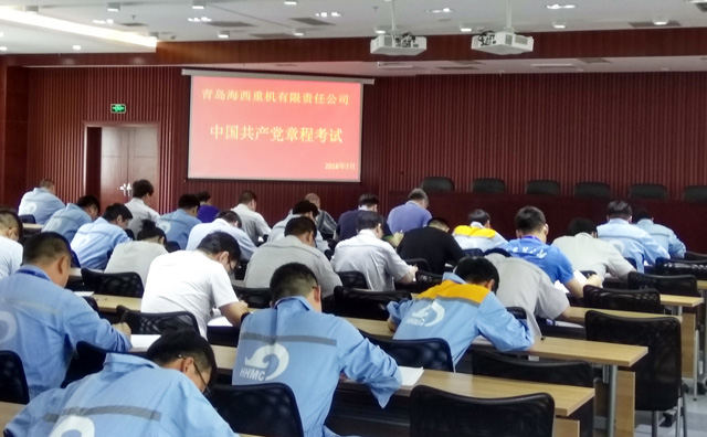 7月28日下午14點(diǎn),海西重機(jī)黨委組織公司正式黨員開(kāi)展黨章考試,海西重機(jī)黨委書(shū)記、董事長(zhǎng)鄧振山,黨委副書(shū)記、總經(jīng)理張懷志,黨委副書(shū)記、紀(jì)委書(shū)記朱聲凱,副總經(jīng)理、工會(huì)主席代振華參加了本次考試,共計(jì)120余名黨員參加了考試,預(yù)示著海西重機(jī)黨委成功組織開(kāi)展逐字逐句學(xué)黨章活動(dòng)。