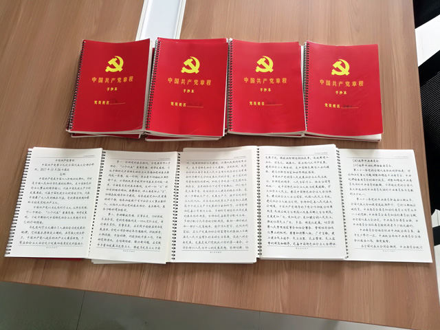 項(xiàng)目黨支部開(kāi)展黨章抄寫(xiě)活動(dòng)