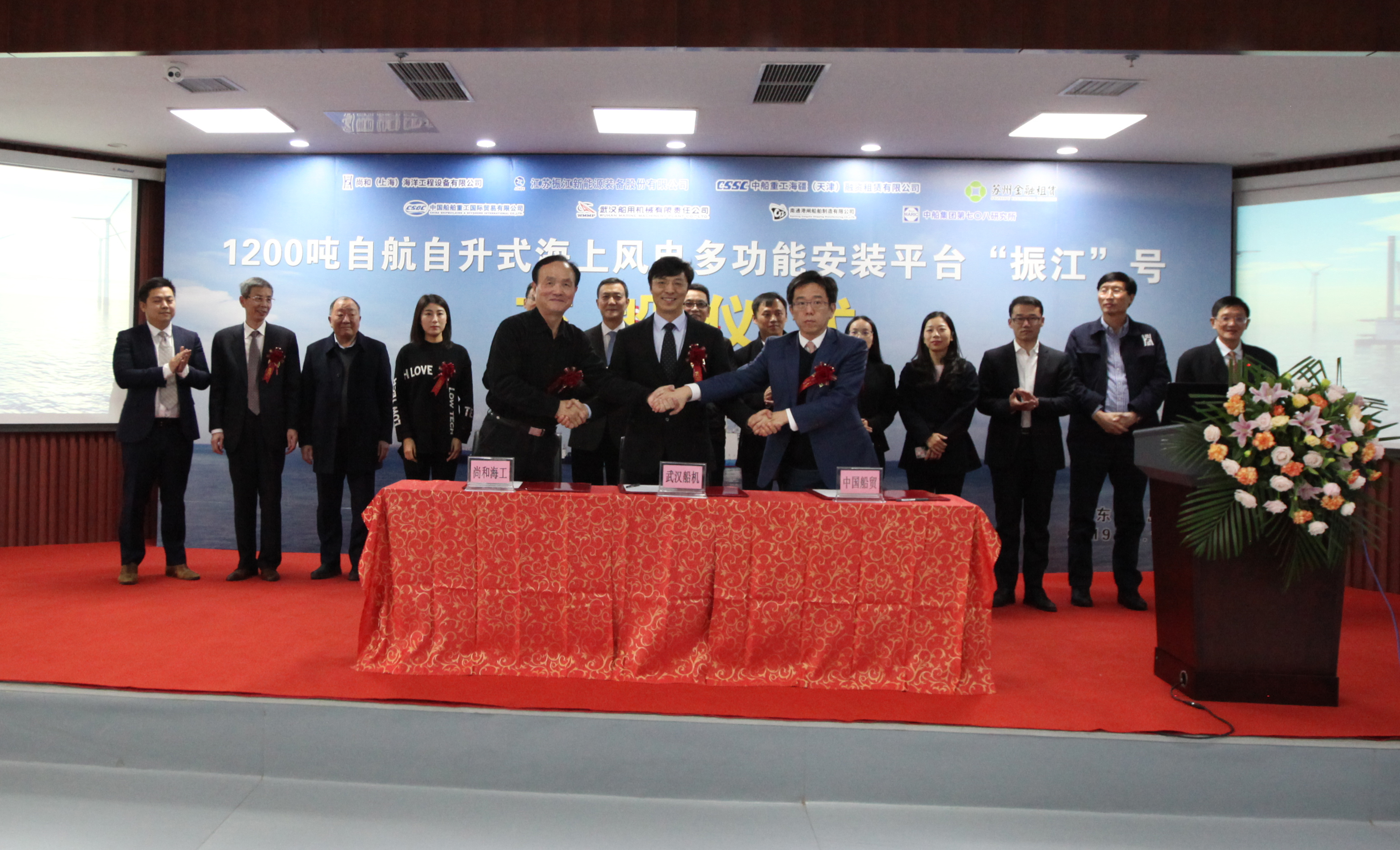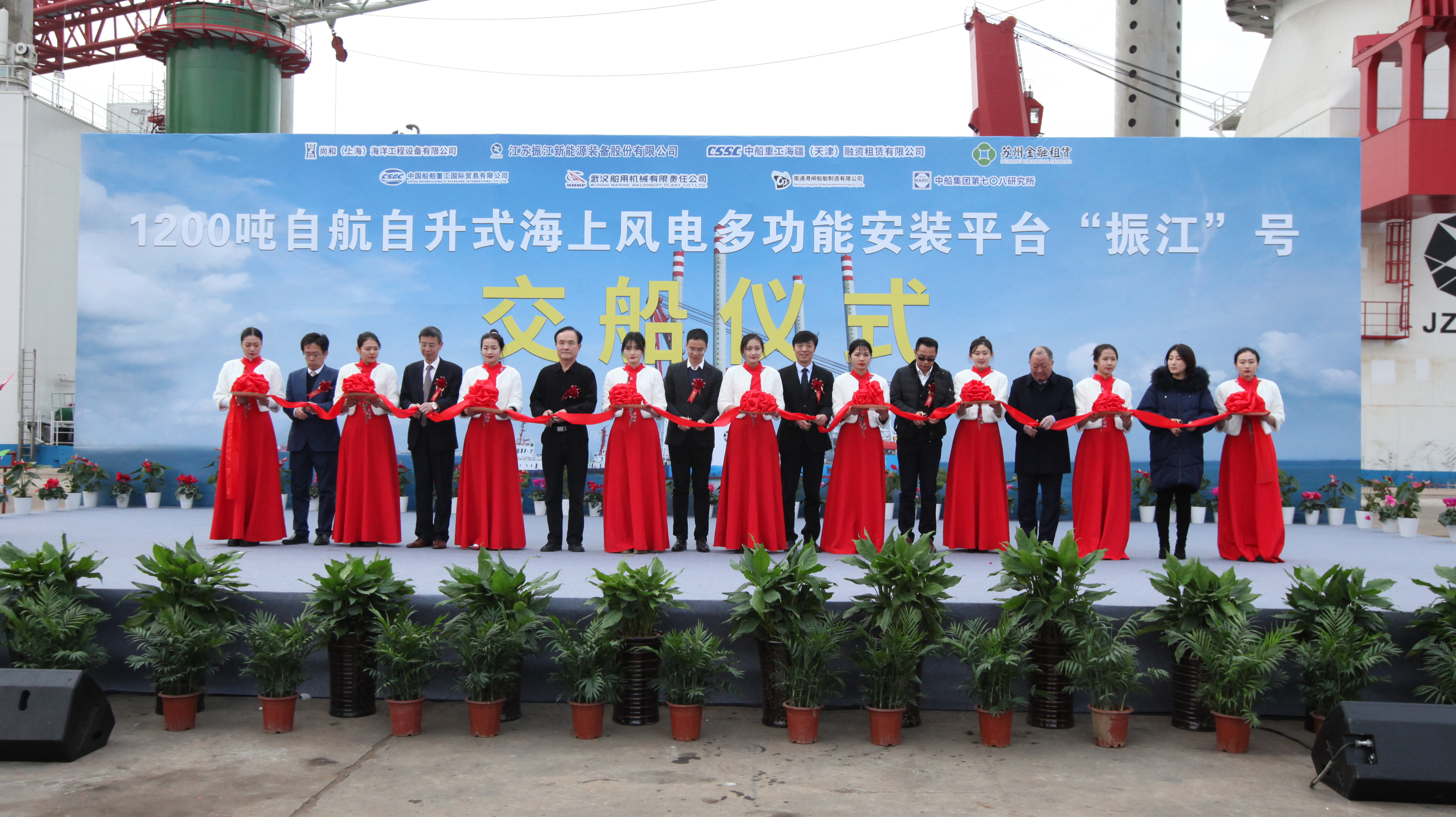 12月13日下午,國內(nèi)首座1200噸自航自升式風電安裝平臺——“振江”號交付儀式在武漢船機海西重機隆重舉行。尚和(上海)海洋工程裝備有限公司、江蘇振江新能源裝備股份有限公司、中信銀行、中國船舶及海洋工程設(shè)計研究院、中國船級社等單位領(lǐng)導和項目相關(guān)人員共同見證了這一歷史性時刻。