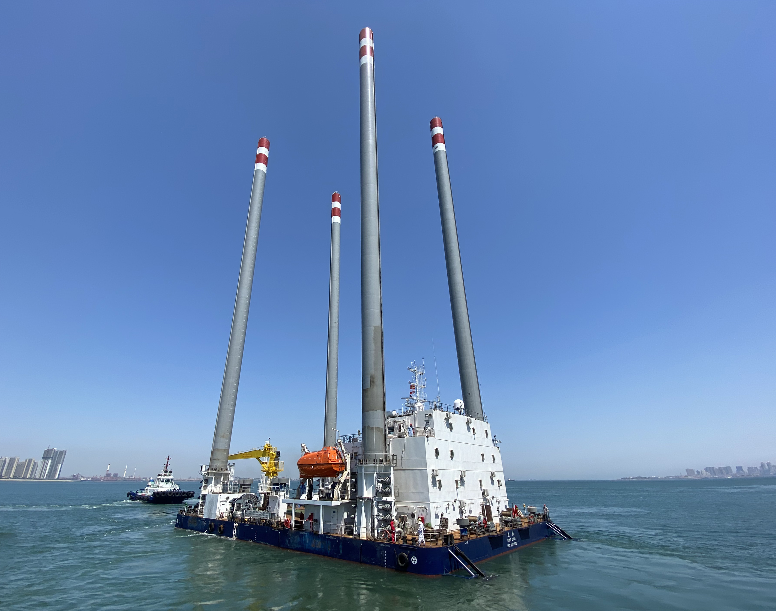 平臺采用電動(dòng)齒輪齒條升降系統(tǒng),由平臺主體、樁腿(帶樁靴)、升降系統(tǒng)、推進(jìn)系統(tǒng)、DP-1動(dòng)力定位系統(tǒng)和錨泊定位系統(tǒng)等部分組成,主要用于海上風(fēng)電建設(shè)及海洋水工地質(zhì)勘測,包括鉆探、取樣、原位測試、土工試驗(yàn)等全作業(yè)流程,具備高精度動(dòng)力定位功能,能實(shí)現(xiàn)一次樁位同時(shí)完成多孔鉆探與土層分析,是國內(nèi)目前最高效的勘探試驗(yàn)平臺之一,其技術(shù)水平達(dá)到國際先進(jìn)水平。
