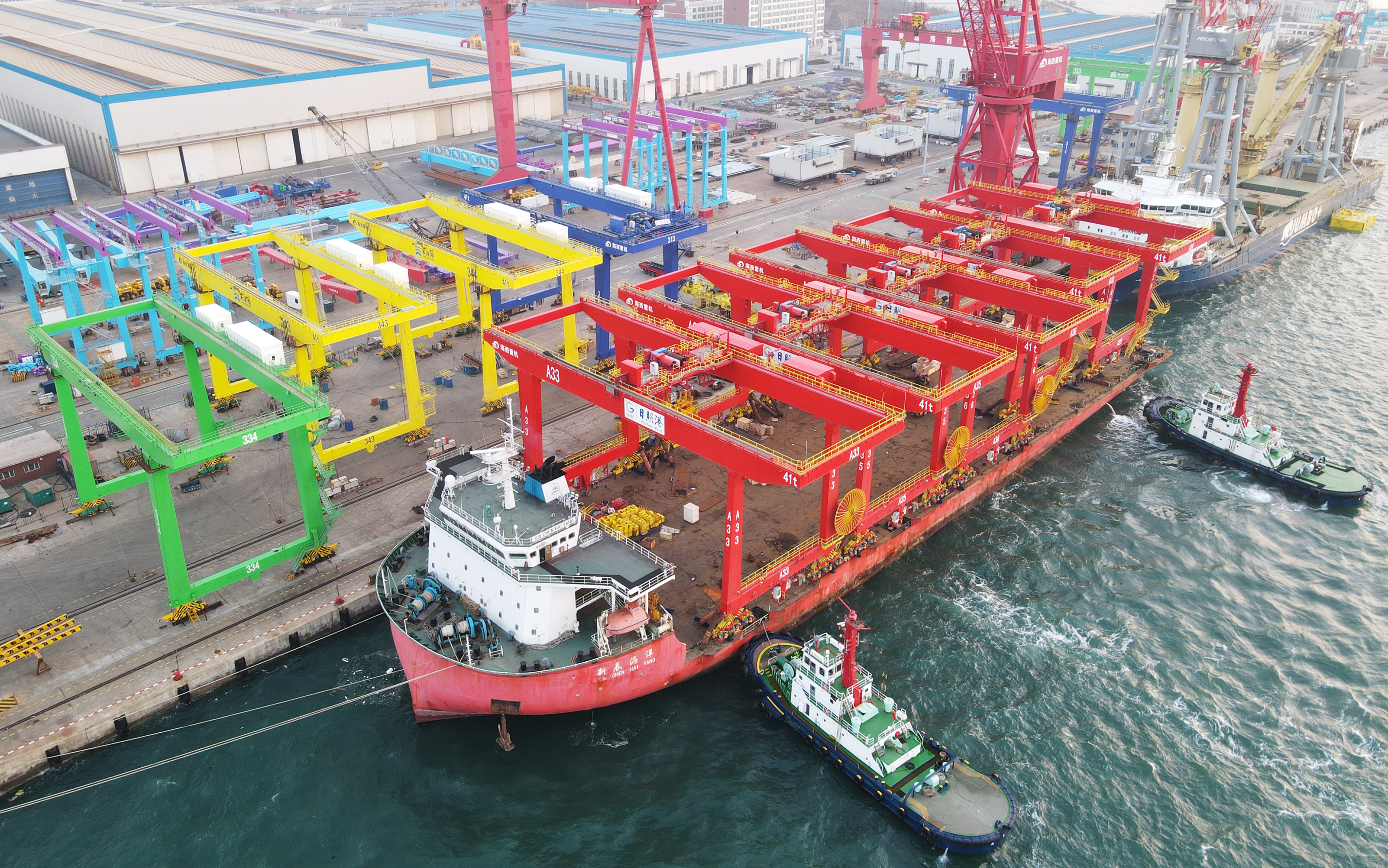 2月2日下午,中國船舶集團旗下武漢船機海西重機公司為日照港集裝箱自動化堆場三期項目打造的第四批5臺自動化軌道吊順利到港,至此該項目16臺設備全部完成廠內制作。