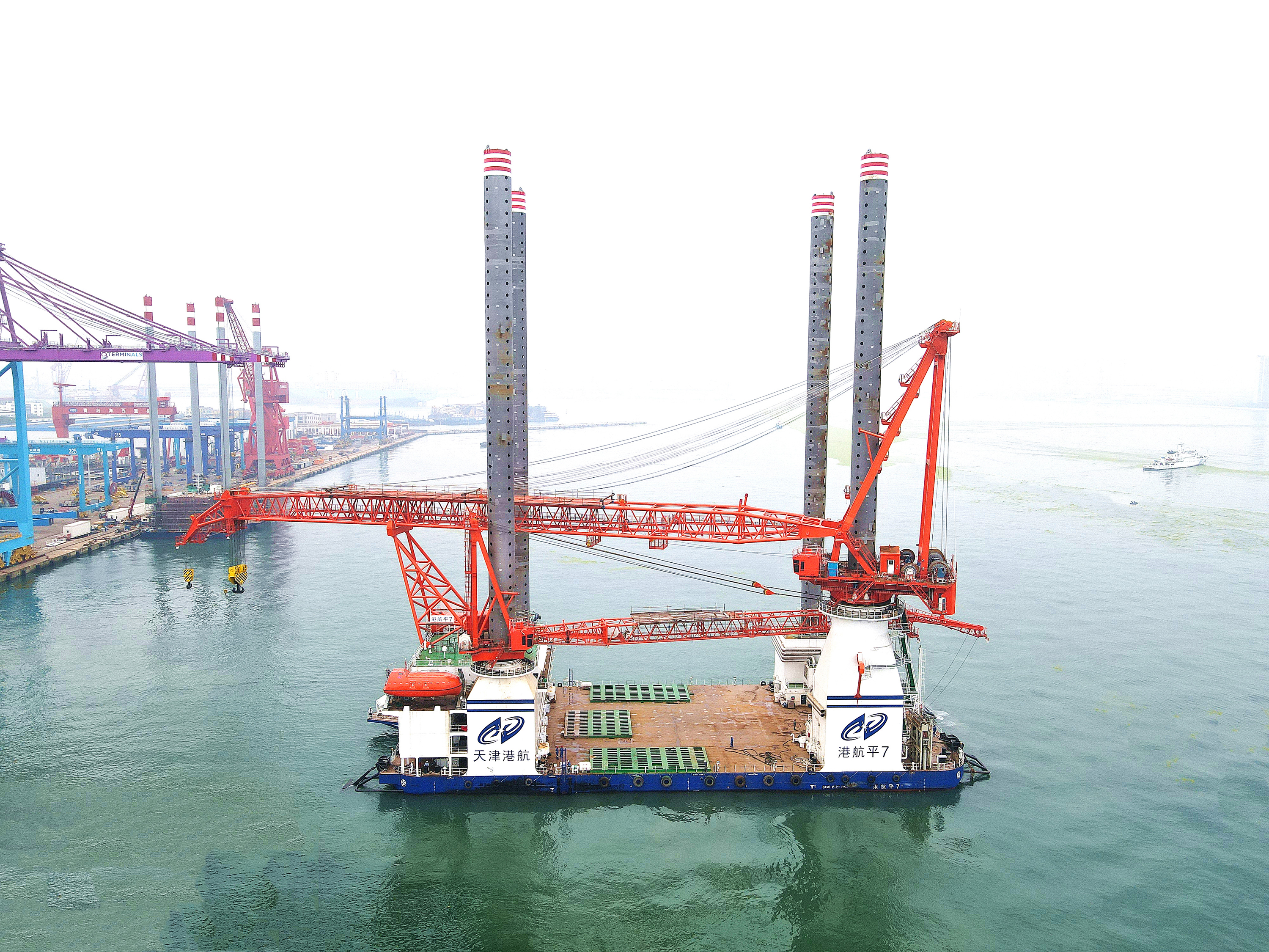 “港航平7”正式服役后,可與1200T全回轉(zhuǎn)自升式海上平臺(tái)——“港航平9”、5000噸風(fēng)電工藝駁船——“港航駁5”、世界最大打擊能量MHU3500S液壓沖擊錘等船機(jī)設(shè)備構(gòu)建更加完備的風(fēng)電施工專業(yè)設(shè)備體系,將有效緩解海上風(fēng)電施工設(shè)備緊張壓力,提升海上風(fēng)電規(guī)?;鳂I(yè)能力,對(duì)貫徹落實(shí)黨中央、國(guó)務(wù)院關(guān)于碳達(dá)峰、碳中和重大決策部署,確?!笆奈濉遍_(kāi)好局、起好步,促進(jìn)國(guó)家綠色能源的發(fā)展貢獻(xiàn)力量。