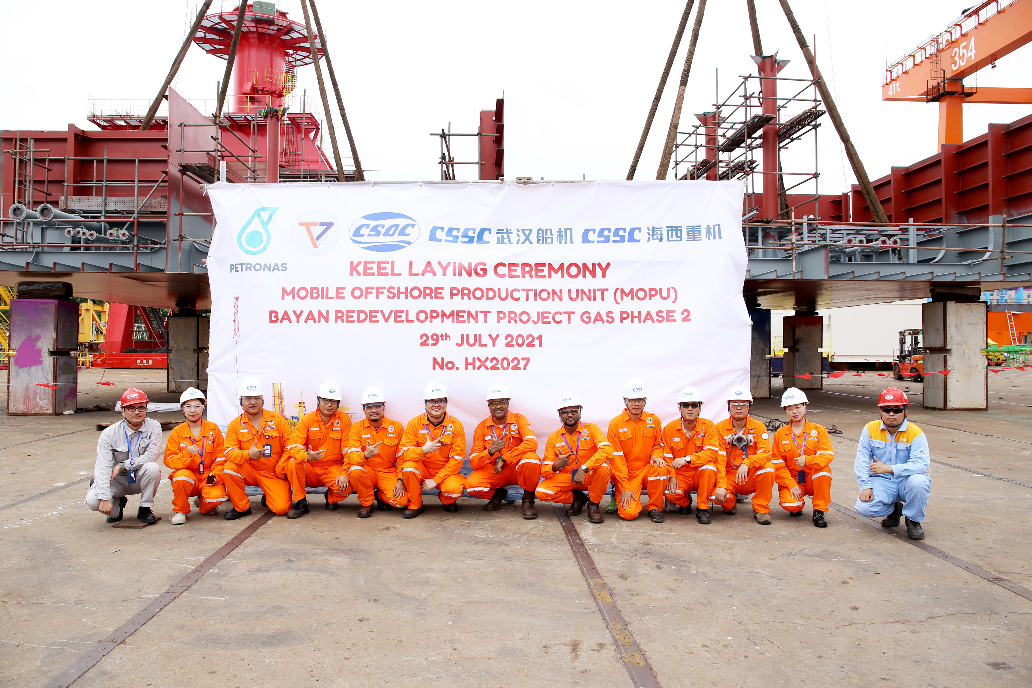 7月29日,馬來西亞可移動(dòng)自升式生產(chǎn)(天然氣)平臺(tái)(簡(jiǎn)稱MOPU)鋪龍骨儀式順利舉行,標(biāo)志著該平臺(tái)正式進(jìn)入船臺(tái)搭載階段。馬來西亞國(guó)家石油公司、T7 Global公司、ABS、中國(guó)船貿(mào)、中國(guó)船舶集團(tuán)旗下武漢船機(jī)海西重機(jī)各方代表通過現(xiàn)場(chǎng)會(huì)和遠(yuǎn)程視頻直播的方式參加了該儀式。