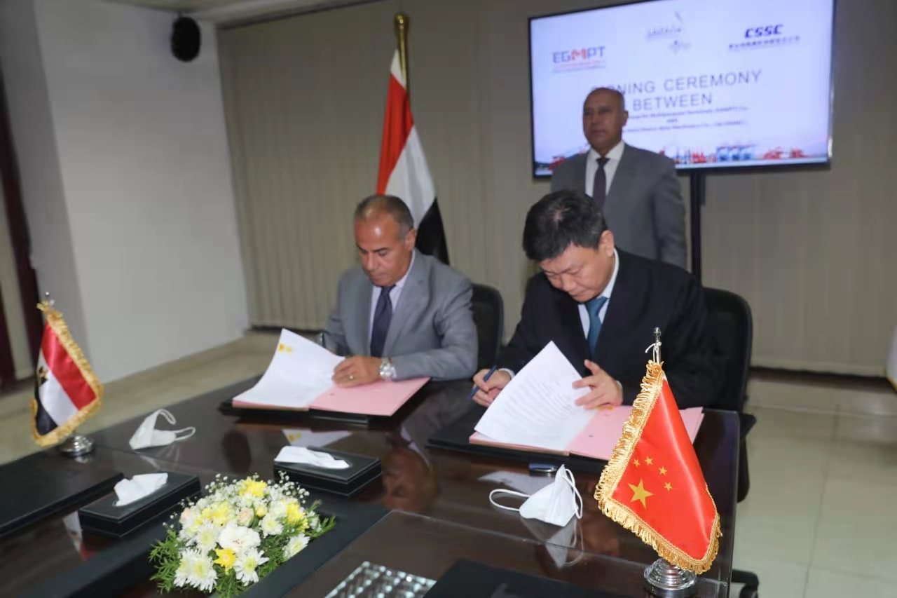 當(dāng)?shù)貢r(shí)間8月7日,中國船舶集團(tuán)旗下武漢船機(jī)海西重機(jī)公司與埃及亞歷山大港多用途碼頭簽訂批量岸橋項(xiàng)目。埃及交通部部長Kamel Elwazir、多用途碼頭(EGMPT)主席Abdelkader Darwish、達(dá)飛集團(tuán)駐埃及負(fù)責(zé)人Eng.Tariq Zaghloul及EGMPT技術(shù)團(tuán)隊(duì),海西重機(jī)黨委書記、董事長鄧振山等出席現(xiàn)場簽約儀式。
