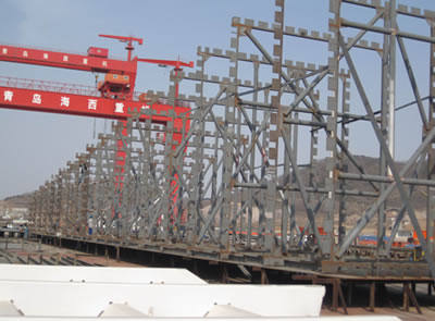 天津新港600T造船龍門吊是青島海西重機有限責(zé)任公司承接的第一臺大型龍門起重機,合同總額1.05億元,是公司關(guān)鍵項目。公司領(lǐng)導(dǎo)高度重視,專門成立了以公司總經(jīng)理為組長的項目組,在全公司實施精品戰(zhàn)略,本著“作一臺設(shè)備,占一片市場,交一個朋友”的宗旨,從聯(lián)合設(shè)計到注重制造的每一個細節(jié),海西重機都組織了多次討論,全力保證產(chǎn)品質(zhì)量。