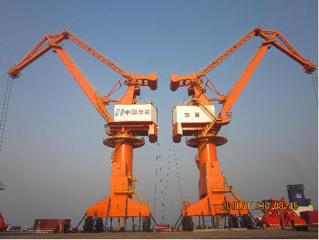 我司為中國華能董家口港制造的2臺MQ4040門座起重機(jī)順利滾裝上船