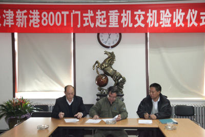 2012年4月7日,天津新港船舶重工第二臺800噸龍門吊交機驗收儀式在業(yè)主方隆重舉行。