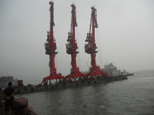 G115于2012年2月3日正式開工,在公司各個(gè)部門的努力奮斗下,于8月17日承載著海西的希望揚(yáng)帆起航發(fā)往連云港,于8月19日靠泊連云港集團(tuán)東泰公司。在現(xiàn)場(chǎng)工作人員的共同努力下,于8月25日三臺(tái)機(jī)全部落軌東泰公司碼頭,并于9月7日交予業(yè)主使用?,F(xiàn)場(chǎng)的安裝調(diào)試進(jìn)展迅速,領(lǐng)先于振華公司同期落軌的兩臺(tái)門機(jī),三臺(tái)門機(jī)投入使用至今運(yùn)行平穩(wěn),深得業(yè)主方面認(rèn)可。